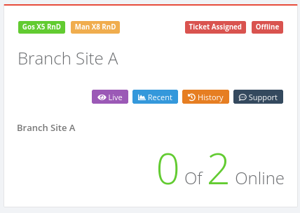 Anonymised screenshot of connection card on eView with new fault acknowledgement "Ticket Assigned" label